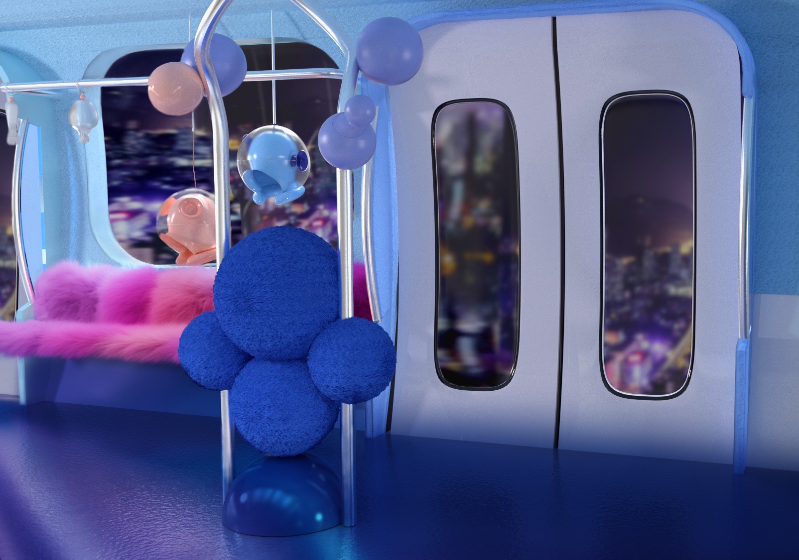 在每日上下班的通勤时光中,人们挤在车厢中压力重重,"绮泡"提供了一种解压理念。以童趣的色彩和毛绒温暖的材质为特色,为乘客们打造了一个更为舒适宜人的环境。这个创意设计将人们从喧嚣的车厢中解放出来,让他们尽情沉浸于自己的世界。